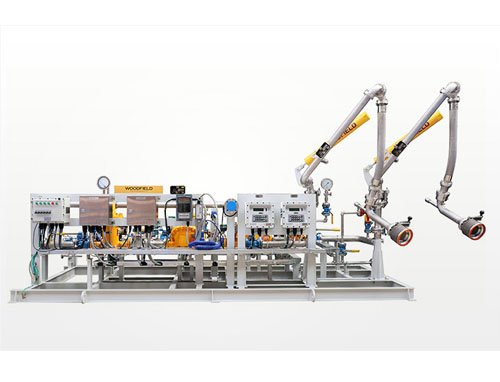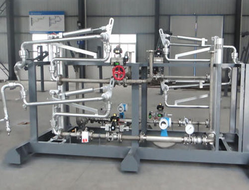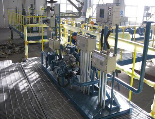 油品定量裝車橇裝組是指將每一個裝車鶴位內的儀表和設備集成在一個專用的框架結構內,儀表和設備包括裝車鶴管、流量計、防溢油靜電報警控制器、壓力變送器、裝車流量控制閥、緊急切斷閥,裝車泵、批量控制器等, 只預留工藝連接口和控制電源和通訊接口,這個整體集成部分稱為裝車橇。與傳統(tǒng)的裝車控制系統(tǒng)就地組裝比較,裝車橇可以節(jié)省現場設計和現場施工量,縮短項目工期,提高裝車控制系統(tǒng)的質量。